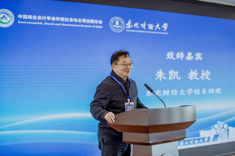 东北财经大学校长助理朱凯教授出席开幕式并致辞。朱凯对本次会议的顺利召开表示热烈祝贺,并向各位嘉宾致以诚挚欢迎和衷心感谢。他指出,在加快发展新质生产力的时代背景下,深入探讨ESG理论与实践创新具有重要战略意义,期待通过此次会议推动ESG研究的深入发展。