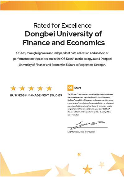 在近日结束的QS Stars评级中,东北财经大学工商管理学院MBA项目获得了最高级别的五星认证。这是我校第一个获得QS Stars五星认证的项目,同时学校也成为国内首家获得MBA项目QS Stars五星认证的高等院校。