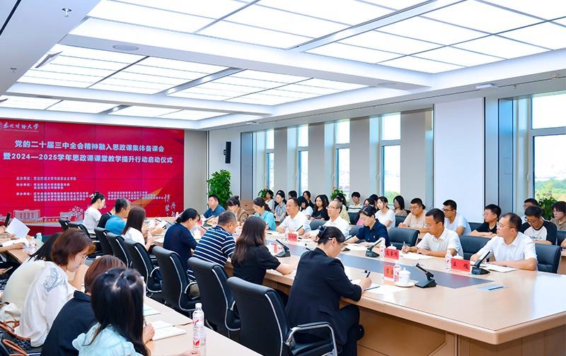 会上,汪旭晖传达了新时代学校思政课建设推进会精神及思政课课堂教学提升行动文件精神,并就贯彻落实工作提出三点要求:一是要先学一步,将党的二十届三中全会精神全面、系统、准确融入思政课教学,帮助学生及时准确领会党的最新理论成果;二是要讲透讲好,既要强化知识要点的阐释,也要讲清一系列新名词、新概念,引导学生深刻理解党的二十届三中全会总体部署;三是要提升效果,充分发挥思政课程与课程思政的协同联动作用,着力构建“大思政”育人新格局。