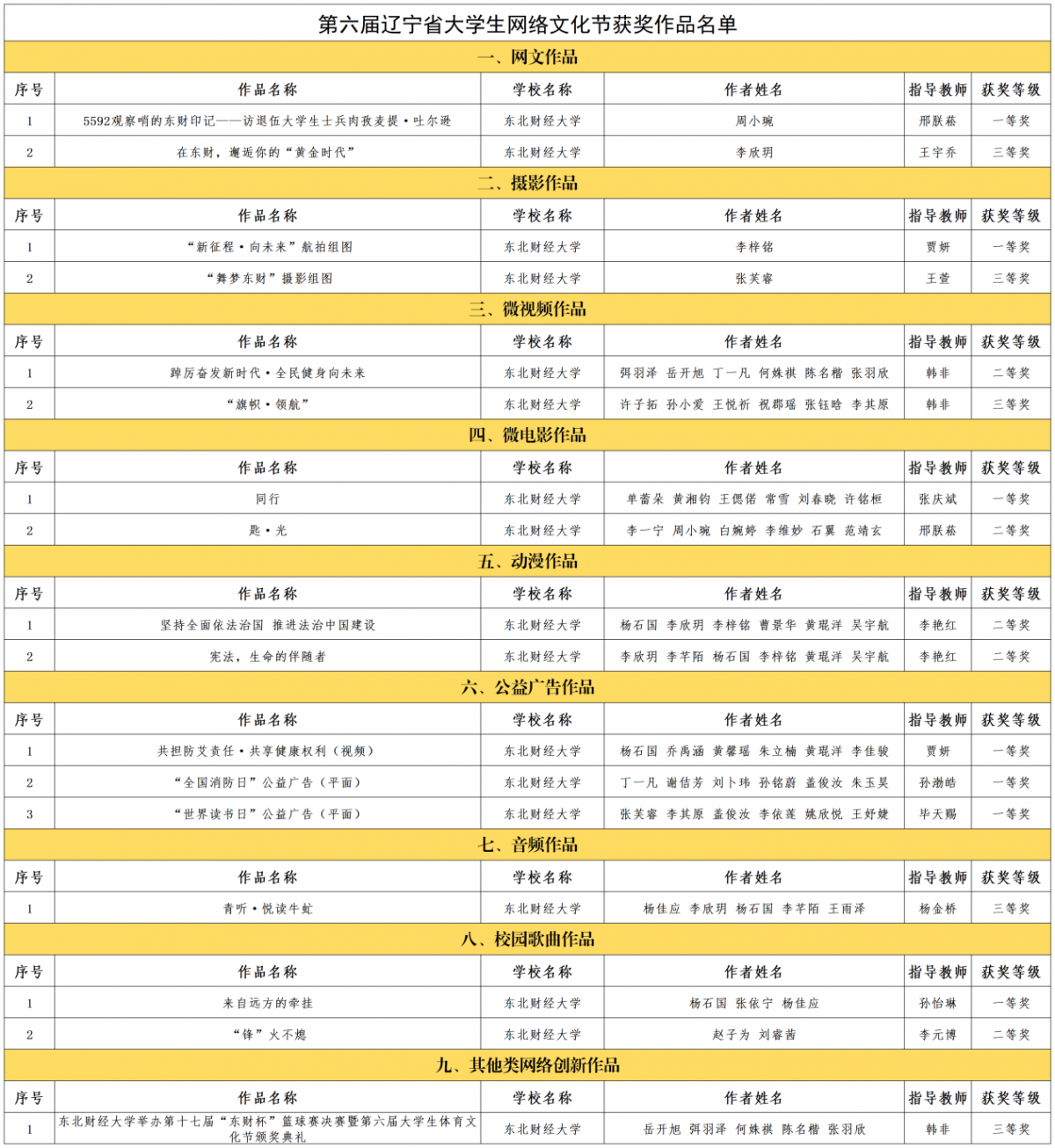 近日,辽宁省高校网络思想政治工作中心公布第六届辽宁省大学生网络文化节和全省高校网络教育优秀作品推选展示活动评选结果。东北财经大学师生20项参赛作品喜获佳绩,其中一等奖7项、二等奖5项、三等奖8项。