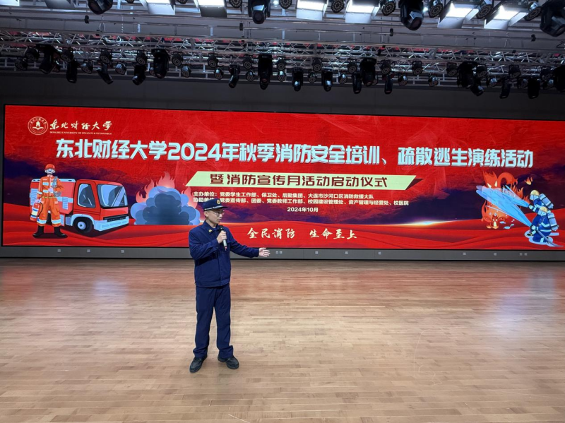 为切实加强校园消防安全管理,提升师生员工消防安全意识和自防自救能力,10月30日,东北财经大学与大连市沙河口区消防救援大队联合开展2024年秋季消防安全培训、疏散逃生演练活动暨消防宣传活动月启动仪式。学校党委常委、副校长刘险峰,沙河口区消防救援大队副大队长于雷出席活动。学校有关部门负责人、消防安全员、辅导员代表、学生代表、图书馆工作人员、实验室安全管理人员、各楼宇楼管和门卫值班人员、校内商户等900余人参加活动。