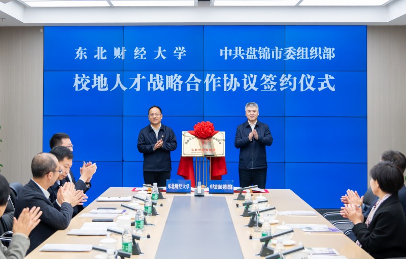 肖兴志、张迎共同为“盘锦市人才(大学生)服务工作站东北财经大学站”揭牌。汪旭晖、张立新分别代表双方签署了校地人才战略合作协议。学校相关职能部门负责人、盘锦市相关党政部门负责同志参加活动。