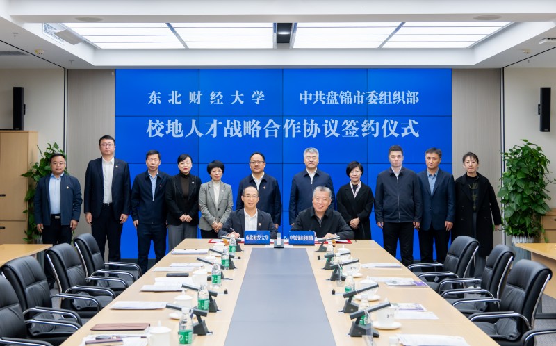 为深入贯彻落实习近平总书记在全国教育大会和中共中央政治局第十四次集体学习时的重要讲话精神,协同推进教育、科技、人才“三位一体”融合发展,推动大学生高质量充分就业,打造校地合作新范式,助力辽宁全面振兴新突破,11月12日,东北财经大学与中共盘锦市委组织部在笃行楼举行校地人才战略合作协议签约仪式。学校党委书记肖兴志,党委常委、副校长汪旭晖,盘锦市委常委、组织部部长张迎,盘锦市委组织部分管日常工作的副部长张立新出席签约仪式。