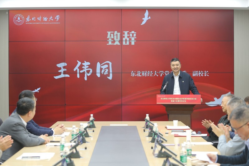 在国际经济贸易学院校友分会换届大会上,学校合作发展与校友工作办公室主任韩非宣读了《关于同意东北财经大学校友会国际经济贸易学院分会换届的批复》。王伟同为国际经济贸易学院校友分会第二届理事会组织机构成员颁发聘书并致辞,他对换届大会的成功举办表示祝贺,向为学校建设贡献力量的各位校友表示感谢。王伟同为校友们介绍近年来学校在发展建设一流数字财经大学方面取得的成果,并表示校友是母校的宝贵财富,是学校建设发展中不可或缺的重要力量,希望各位校友可以在自己所在的行业发扬东财精神,发出东财声音,与学校同向同行,在学校人才培养、学科建设、科学研究、产教融合等方面给予大力支持,共同为辽宁全面振兴新突破和强国建设作出东财贡献。