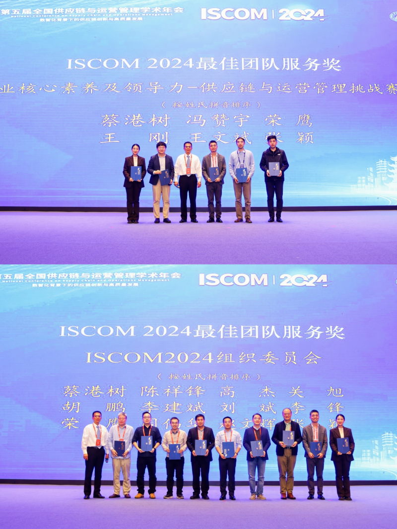 本次会议共评选出最佳会议论文一等奖1篇,二等奖2篇,三等奖3篇,优胜奖4篇;方略商业核心素养与领导力——供应链与运营管理挑战赛一等奖4名,二等奖8名,三等奖12名。此外,分会还评选出了ISCOM 2024最佳个人服务奖、最佳团队服务奖、团队特别贡献奖。其中,东北财经大学现代供应链管理研究院张颖副院长作为ISCOM2024组委会成员获得最佳团队服务奖及方略商业核心素养及领导力挑战赛组委会最佳团队服务奖。