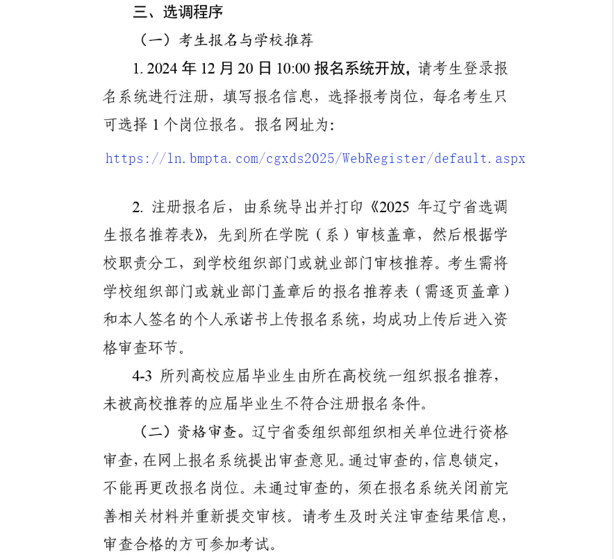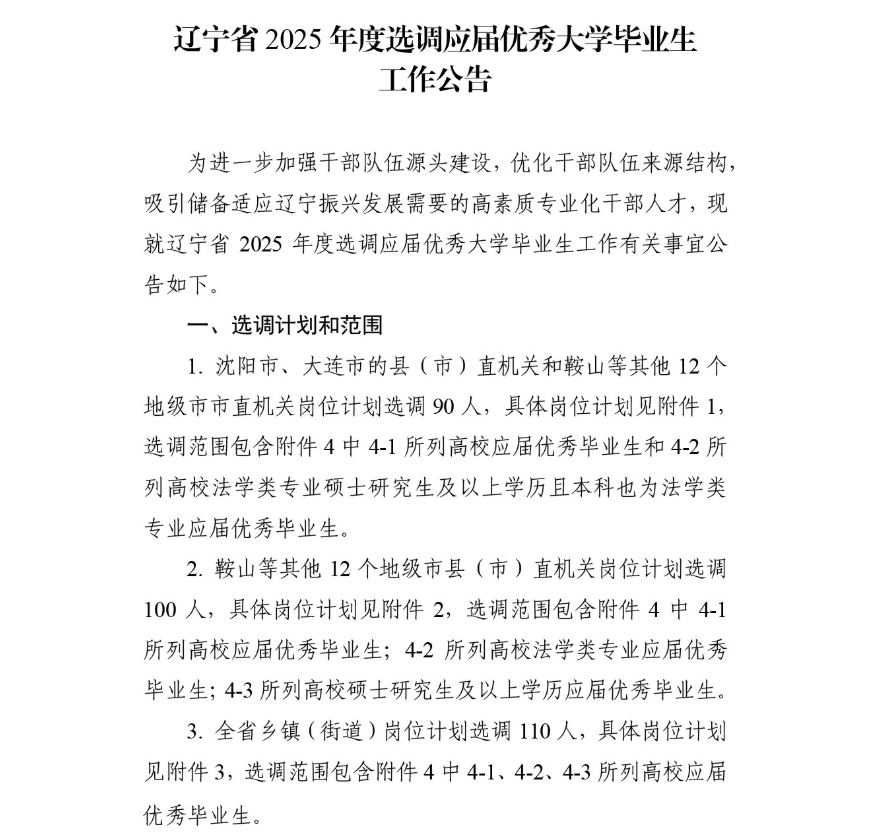 辽宁省2025年度选调应届优秀大学毕业生工作公告
