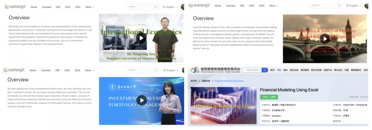 自2021年起,学校国际商学院积极推进全英文国际慕课建设,面向全球学习者开放优质课程资源和教学服务,促进优质教育资源的全球共享,努力打造国际慕课的东财品牌。截至目前,包括“国际经济学”、“金融理论与政策:基于全球和中国视角”、“投资分析与组合管理”及“Excel金融建模”,国际商学院已有五门课程上线国家智慧教育平台国际版。这是学校在人才培养与课程建设国际化、数字化的重要成果。通过建设具有自主品牌和定制化的线上课程资源,国际商学院将积极推进以学生为中心的混合式教学、翻转课堂、自主学习以及过程化考核,提升学生的学习积极性与体验,构建全方位的沉浸式教学互动体系,优化学生的学习效率。