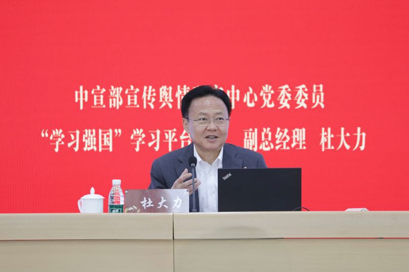 杜大力以“认真学习贯彻全国两会和全国教育大会精神 努力打造面向高校学生的高质量智能融媒产品”为题,从深刻认识准确把握新时代我国教育事业的定位,生成式人工智能和大语言模型的发展带来了“赋能教育”的多种可能性及在新闻舆论领域的应用前景更加明晰,“学习强国”学习平台对打造高质量智能融媒产品的有益探索等三个方面作了精彩辅导。报告主题鲜明、内容丰富、内涵深刻,加深了与会师生对“学习强国”学习平台“同学汇”作为面向广大高校师生的思政社交产品具备优势的认识,进一步明晰了智媒时代充分运用新媒体新技术推动学校思想政治工作传统优势同信息技术高度融合的重要性,为新时代高校做好互联网时代思想政治工作和意识形态工作提供了有力指导。