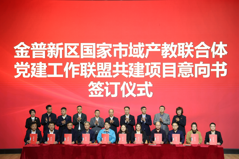 会上,“金普新区国家市域产教联合体党建工作联盟”正式揭牌。11家成员单位代表上台宣读和签订党建工作联盟倡议书,签订党建工作联盟共建项目意向书。