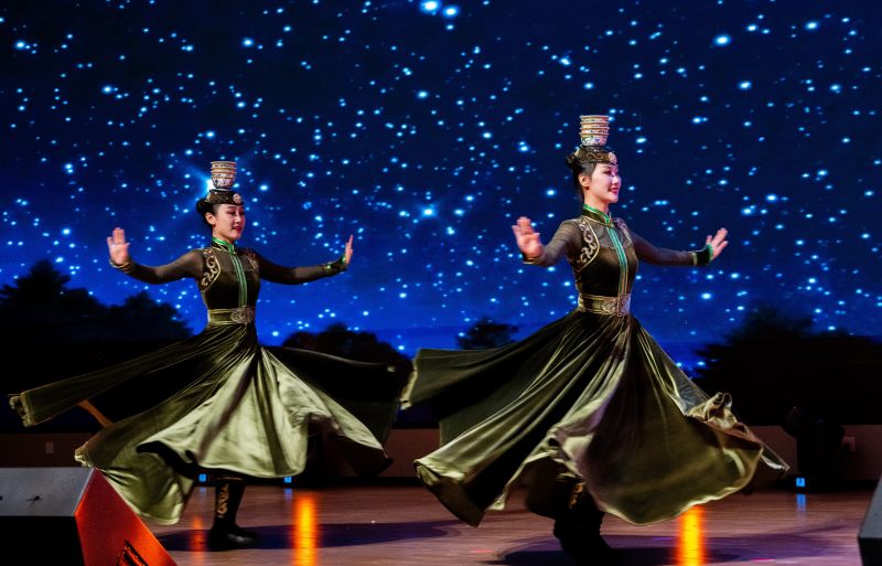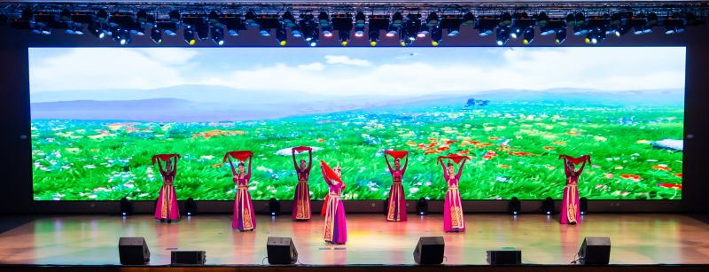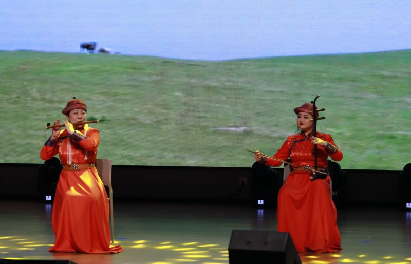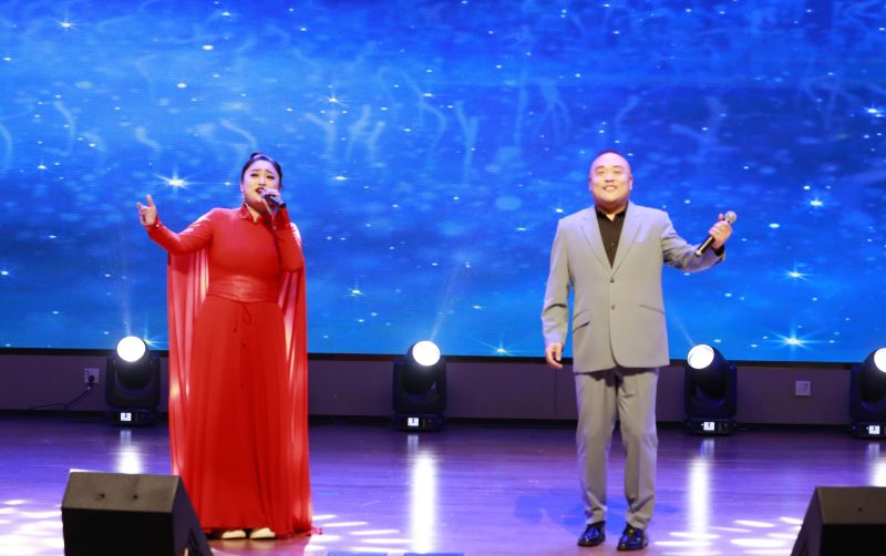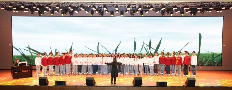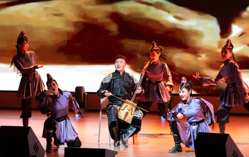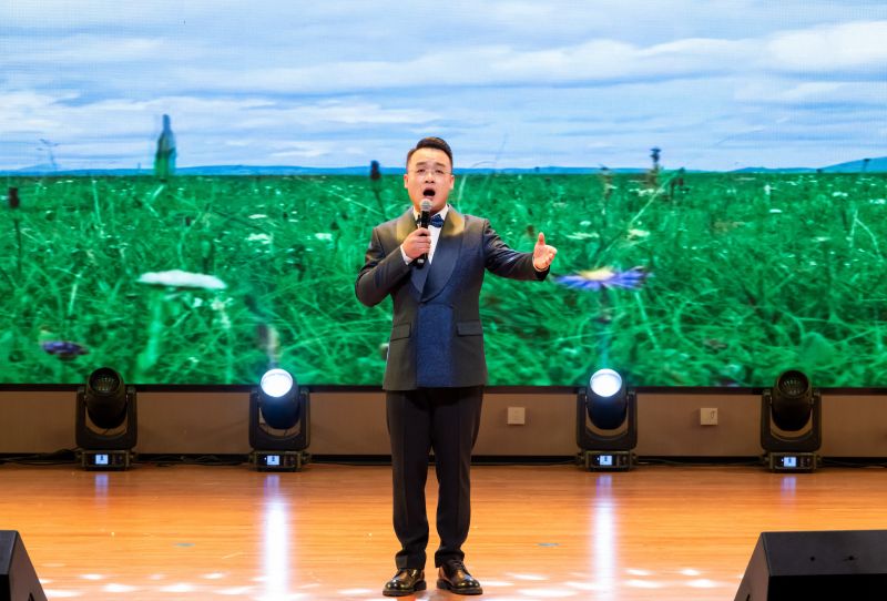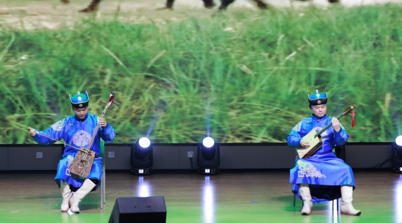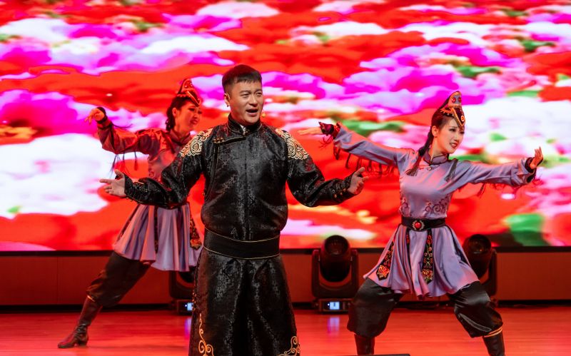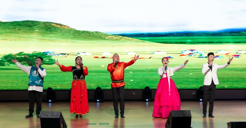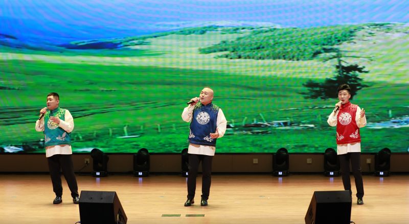 蒙古贞乌兰牧骑艺术家团队身着民族特色服饰,展示了马头琴呼麦与舞蹈《骏马归来》,二胡、马头琴、竹笛、蒙古三弦等器乐组合《赛马》,蒙古勒津顶碗舞《呼格泰阿都沁》,还以歌伴舞、独唱、二重唱、三重唱等形式表演了《中华民族一家亲》《唱支山歌给党听》《家乡》《睦邻情》等节目,带领师生沉浸式领略了蒙古族传统歌舞的独特魅力,深刻感悟中华优秀传统文化底蕴。东北财经大学阿卡贝拉合唱团演唱了《敕勒歌》,以悠扬的旋律与多声部和声描绘出敕勒川的壮丽草原风光,展现了青春学子的良好精神风貌。现场气氛热烈,掌声不断。