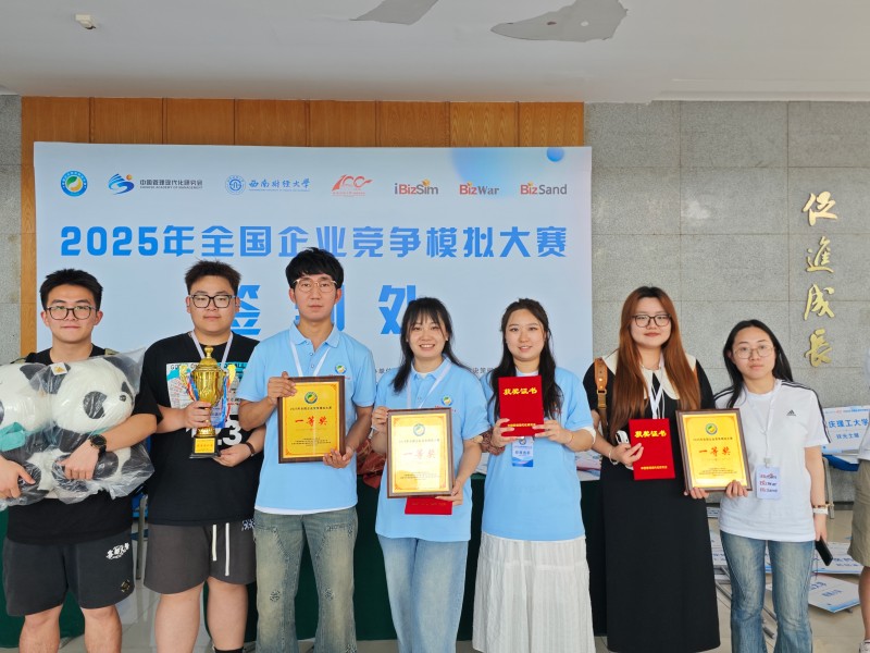 5月16日至18日,2025年全国企业竞争模拟大赛全国总决赛在西南财经大学举行。东北财经大学工商管理学院李颖老师指导的“忆苏轼队”(队员:王舒、陶奕同、孙秋诗)以企业决策赛道(研究生组)赛道第一名的成绩荣获一等奖,创新创业学院赵迪老师指导的“比特动力队”(队员:张宪崇、汪锦宏)荣获企业决策赛道(本科生组)一等奖,创新创业学院李作奎老师指导的“边际成本刺客队”(队员:张梦瑶、李潇笑、马慈)荣获企业运营赛道(本科生组)一等奖。此外,东北财经大学荣获优秀组织奖。