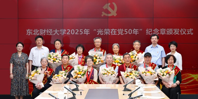 为庆祝中国共产党成立104周年,6月23日,东北财经大学2025年“光荣在党50年”纪念章颁发仪式在笃行楼会议室举行。学校党委书记方红星,党委常委、副校长孙武军,荣获纪念章的老党员代表、离退休党委委员、退休党支部书记代表、相关部门负责人参加颁发仪式。仪式由党委常委、组织部部长王玮主持。