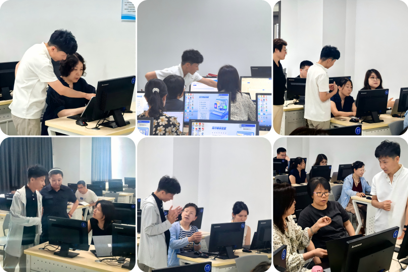 7月8日、10日,超星集团高级教学设计师李敏玉在笃行楼509教室依托超星课程平台向参训教师讲解了AI课程的建设步骤,并指导老师们进行实操演练。