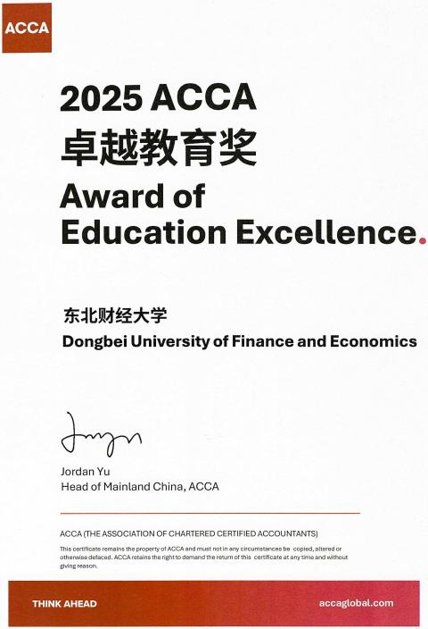 10月10日至11日,第十六届ACCA全国教育论坛在广州金融学院召开,论坛以“应时而变,育见未来:财会行业重塑与教育创新赋能”为主题,聚焦ACCA专业资格最新变革,深度解读以数字赋能与可持续发展为核心构建的全新能力框架,以及对高校财会人才培养的多维赋能价值。来自全国高校经管类学科负责人、行业领军人物及企业代表齐聚一堂,共探行业发展新方向。会上,ACCA对合作院校在人才培养和教学创新方面取得的卓越成果予以表彰,东北财经大学荣获年度“卓越教育奖”,这是ACCA对学校持续深化国际会计教育改革的高度肯定。