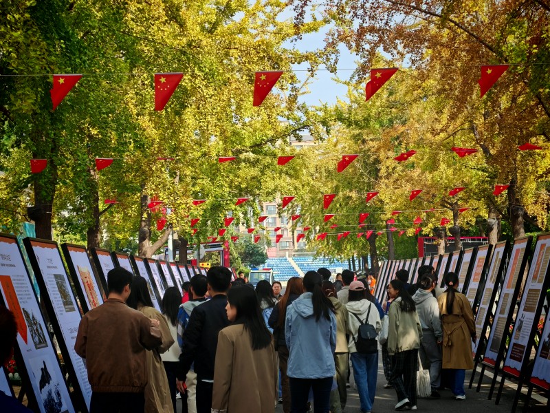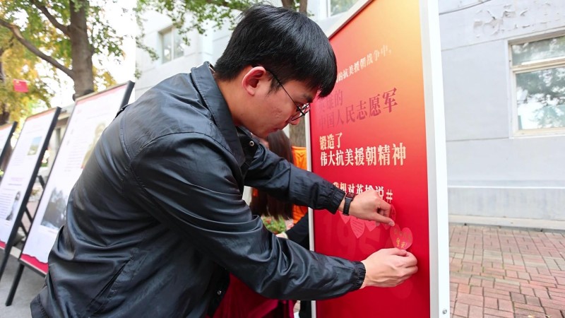 展览吸引全校近万名师生驻足观看,大家认真听取讲解,深情回望中国共产党领导抗美援朝战争的光辉历史,深切体会抗美援朝英雄集体的无畏气概,深刻感悟伟大抗美援朝精神的丰富内涵。展区同时设有“青春向党 强国有我”——纪念中国人民志愿军抗美援朝出国作战75周年挑战答题互动区和“我想对英雄说”留言墙。师生们在留言墙上纷纷写下对中国人民志愿军英雄的敬意,“先烈用热血换来和平,吾辈当以奋斗告慰英魂!”“以青春之力护盛世中华”等真挚留言承载着师生对英雄的深切缅怀与奋进新时代的责任担当。