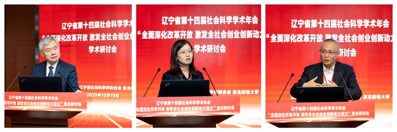 为深入贯彻落实党的二十大和二十届二中、三中全会精神,全面贯彻落实习近平总书记关于东北、辽宁振兴发展的重要讲话和重要指示批示精神,特别是习近平总书记在辽宁考察时的重要讲话和重要指示精神,为打好打赢决胜之年决胜之战提供理论支持和精神动力,促进辽宁省哲学社会科学学术繁荣发展,10月19日上午,由辽宁省社会科学界联合会和东北财经大学联合主办,东北财经大学东北全面振兴研究院、科研处、东北亚经济研究院、上海合作组织研究中心(教育部国别和区域研究备案中心)、中国内部控制研究中心、文旅产业创新发展研究院、辽宁(大连)自贸区研究院承办的“全面深化改革开放 激发全社会创业创新动力活力”学术研讨会在东北财经大学成功举办。来自国务院发展研究中心、辽宁省人民政府研究室、商务部国际贸易经济合作研究院、中国科学院大连化物所、清华大学、复旦大学等单位的专家学者参加研讨交流。