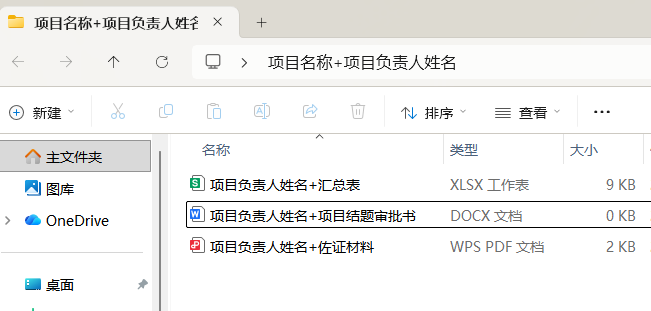 所有电子版材料制成一个压缩包上传至科研创新服务平台——项目申报中,以“项目名称-姓名”命名,材料命名方式如下图: