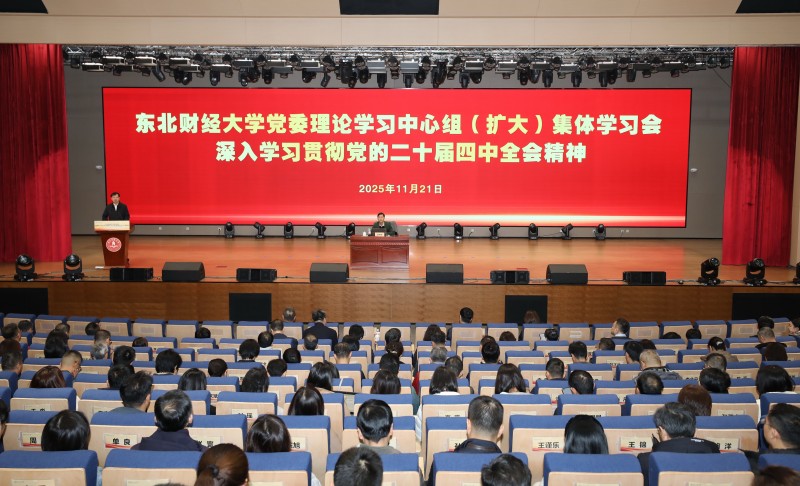 11月21日,东北财经大学党委理论学习中心组(扩大)集体学习会在笃行楼礼堂举行,深入学习贯彻党的二十届四中全会精神。党委书记方红星主持学习。