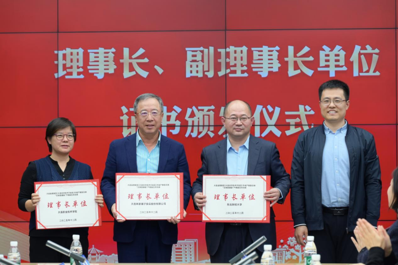 揭牌仪式上,共同体理事长及副理事长单位获颁证书,标志着“文体旅康食”产教融合共同体进入实质性运行阶段。随后,东北财经大学、林家铺子食品股份有限公司、大连职业技术学院、大连博涛文化科技集团股份有限公司、甘甜潮玩(大连)运动文化有限公司、金晟(北京)文旅产业发展有限公司、大连爱团文化传媒有限公司、中科佳禾(大连)科技服务有限公司等8家单位集中签约,在人才联合培养、技术协同研发、产业项目孵化等多个领域达成合作共识。