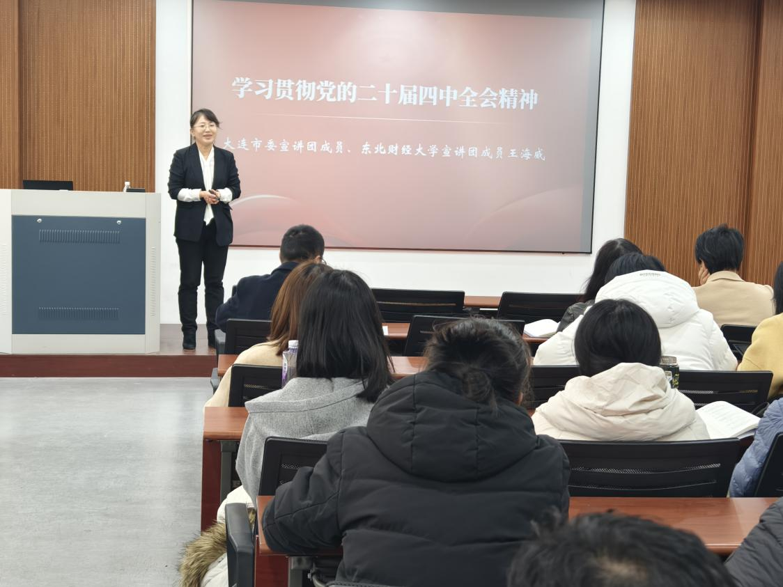 为深入学习领会、全面准确把握党的二十届四中全会精神实质和核心要义,12月10日,学校金融学院举办学习贯彻党的二十届四中全会精神宣讲报告会,邀请学习贯彻党的二十届四中全会精神学校宣讲团成员、马克思主义学院院长王海威教授作专题辅导。金融学院全体教职工、学生代表参加学习。