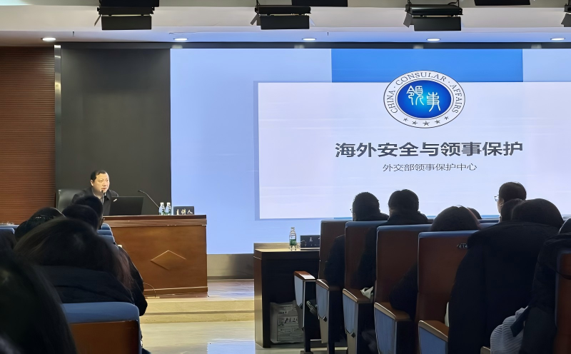 缪宏波在讲座中围绕海外领事保护与协助实务,分析当前海外安全形势,介绍了领事保护相关政策、求助渠道和有关案例。活动现场还播放了领事保护宣传片,发放了《领事保护与协助指南》等宣传材料。
