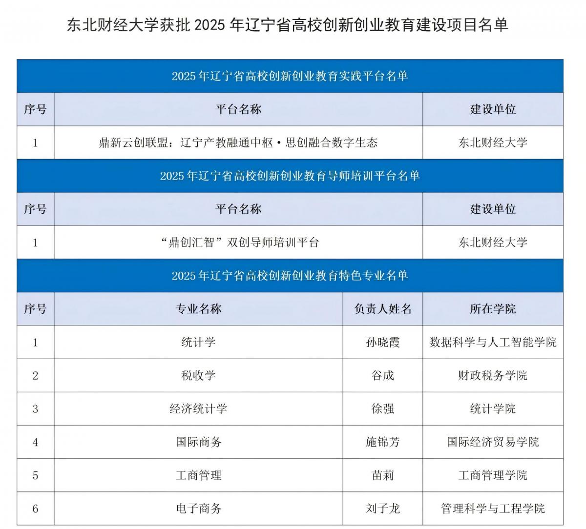 近期,辽宁省教育厅公布了2025年辽宁省高校创新创业教育建设项目遴选结果,东北财经大学共获批创新创业教育实践平台1个、创新创业教育导师培训平台1个、创新创业教育特色专业6个、创新创业教育特色课程9门、科技成果转化特色培训课程6门、创新创业教育指导教师团队4个,充分彰显了学校在创新创业教育领域的扎实积累与综合实力。