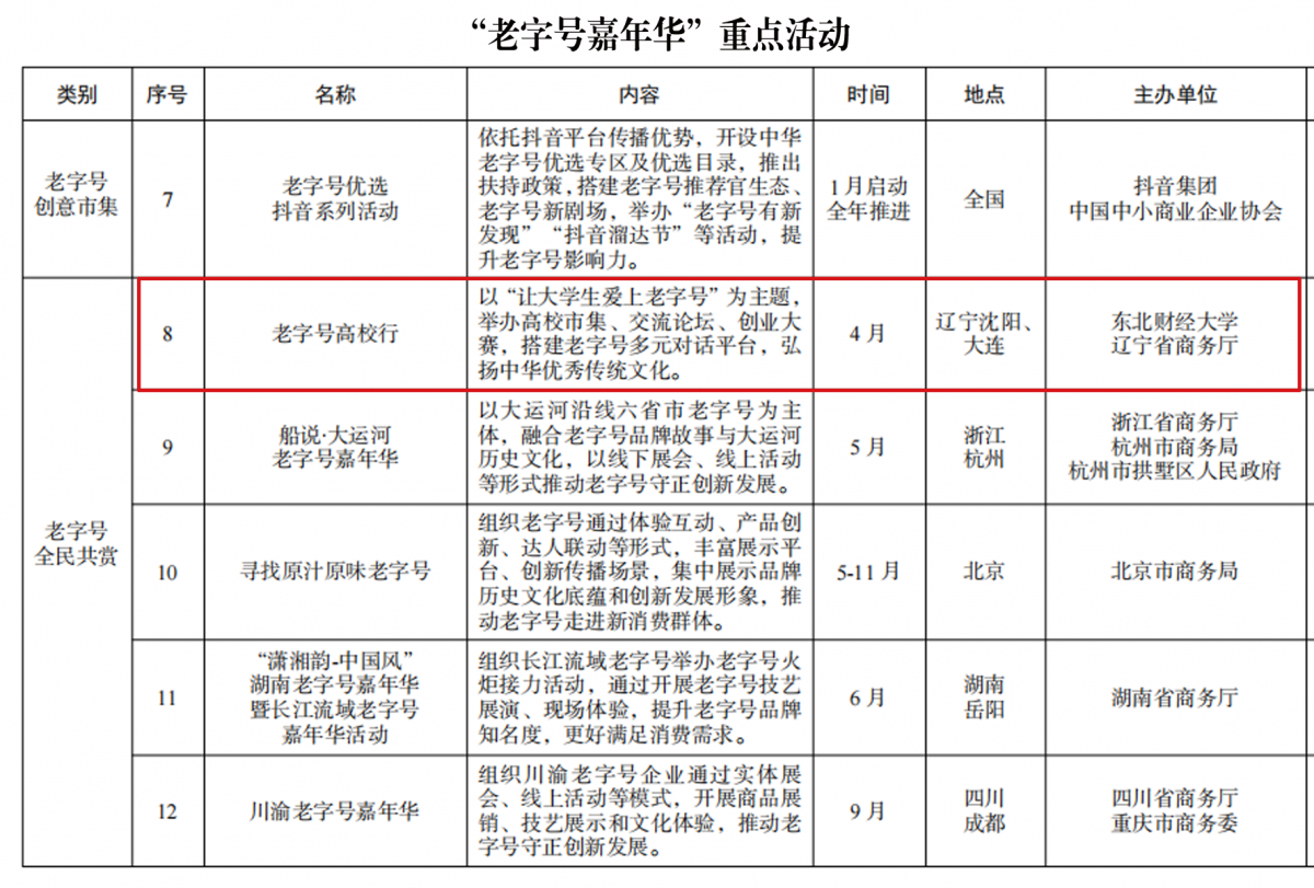 近日,商务部办公厅印发《关于组织开展2026年“老字号嘉年华”活动的通知》,东北财经大学和辽宁省商务厅联合主办的老字号高校行活动成功入选,将于2026年4月在辽宁沈阳、大连举办。
