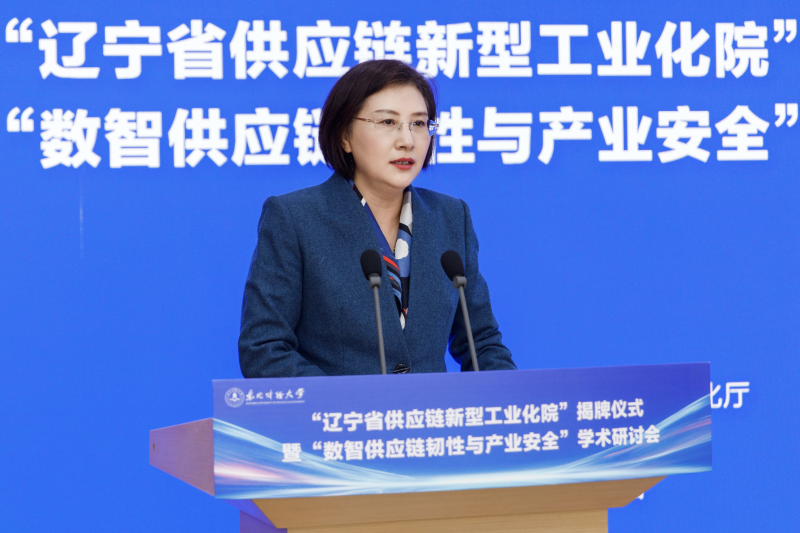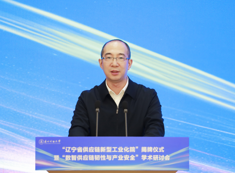 3 月 25 日,由辽宁省工业和信息化厅主办、东北财经大学承办的辽宁省供应链新型工业化院揭牌仪式暨“数智供应链韧性与产业安全”学术研讨会在东北财经大学笃行楼举行。辽宁省工业和信息化厅党组成员、副厅长杜长征,东北财经大学党委副书记、校长汪旭晖出席仪式,仪式由东北财经大学党委常委、副校长王伟同主持。