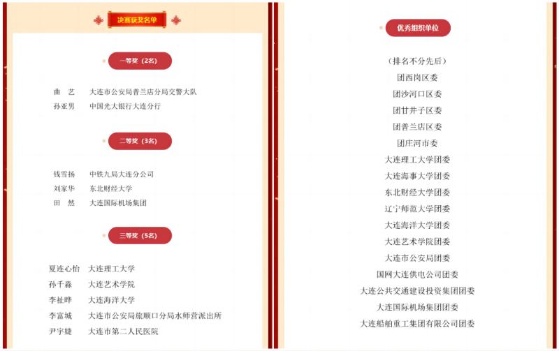 3月24日,由共青团大连市委员会、辽宁省演讲学会联合主办的第二届“青春为中国式现代化挺膺担当”主题宣讲活动暨“深刻理解‘中国式现代化’ 青年奋进‘十五五’新征程”演讲比赛决赛及颁奖典礼圆满落幕。本届大赛覆盖全市机关、企业、高校等各界青年,近千人参赛,最终遴选出10名优秀选手进入决赛。经过层层选拔与激烈角逐,东北财经大学会计学院2024级本科生刘家华凭借精彩表现荣获二等奖;会计学院本科生辅导员王凯铭荣获入围奖;东北财经大学获评优秀组织单位。