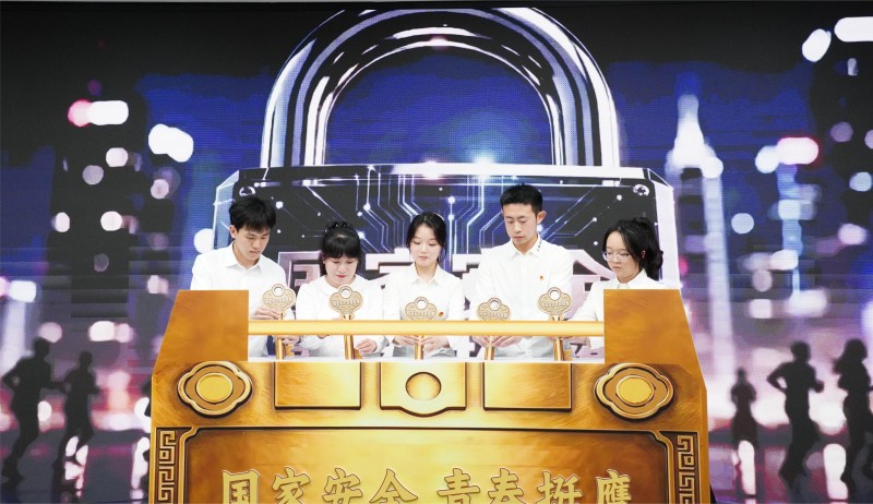 在“青春密钥·共启国安”环节,现场全体团员青年在承诺卡上郑重写下维护国家安全的青春誓言。五位团员青年代表手持承载着全体青年承诺的“青春密钥”,共同解锁“国家安全 青春挺膺”主题倡议,体现了全校团员青年以青春之担当、筑国安之屏障的坚定决心。