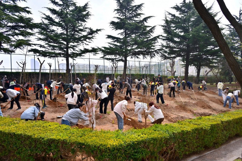 退休老教师、校友、在校大学生,到中小学生、幼儿园的孩子——年龄跨度超过六十年,他们汇聚在同一片土地上,携手种下绿色希望、传递生态火种。一锹土、一桶水,种下的是绿意,浇灌的是信念。这既是“根连根、心连心”的真切诠释,也是大中小学思政课一体化建设的生动实践。教育,正是在这样的接力中,把根扎进沃土,把德铸于心田。