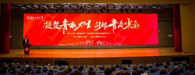 为进一步发挥学生榜样的示范引领作用,东北财经大学在第十八届“学风建设月”活动期间,组建了新一届大学生报告团。4月15日至16日,东北财经大学在笃行楼礼堂举办两场“凝聚青春力量,闪耀青春光彩”大学生先进事迹报告会,19位大学生报告团成员作精彩报告。报告会由博实辅导员工作室成员王凯铭主持,1200余名师生现场聆听故事,共沐榜样风采,共话成长力量。