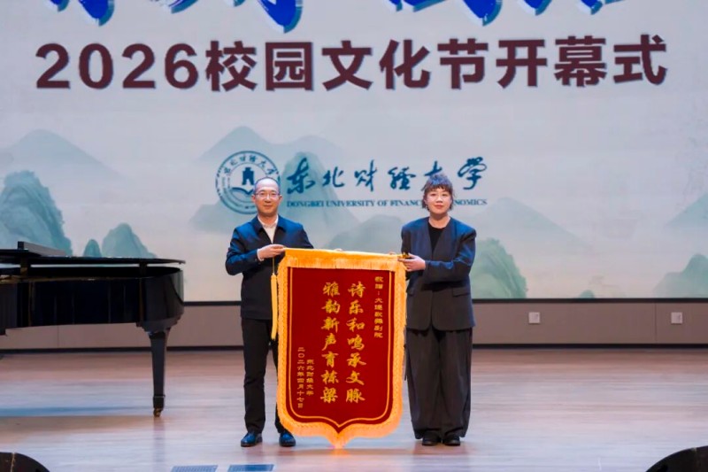 为深入学习贯彻习近平文化思想和习近平总书记对辽宁的重要讲话和重要指示精神,4月17日,东北财经大学在笃行楼礼堂举办2026“文化东财 团结奋进”校园文化节开幕式暨“高雅艺术进校园——「诗乐和鸣 雅韵新声」中国古典诗词音乐会走进东北财经大学”活动。大连歌舞剧院副院长解薇,学校党委书记方红星,党委副书记、校长汪旭晖,校领导孙武军、王伟同、刘险峰,党委常委赵亮、王玮出席活动。开幕式由党委常委、宣传部部长计艳平主持。全校处科级领导干部和师生代表800余人现场参加活动,1万余人通过学校官方微信视频号、微博视频号、抖音平台在线观看。