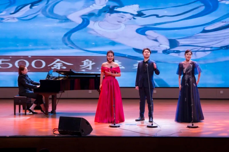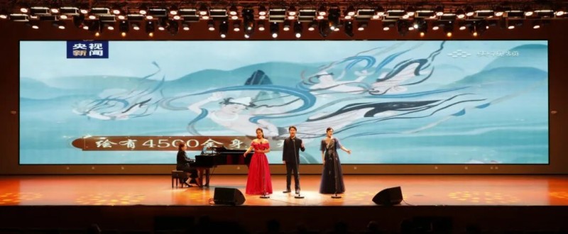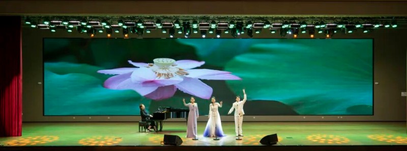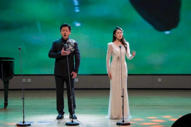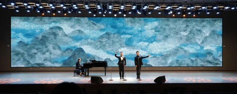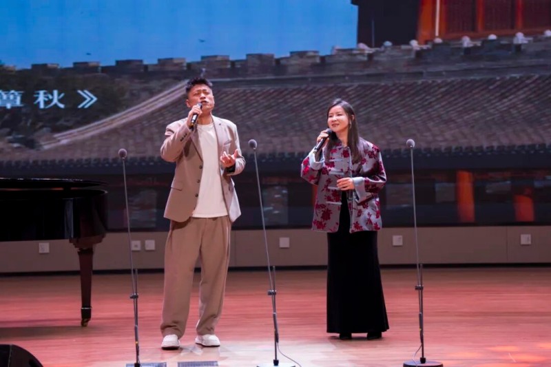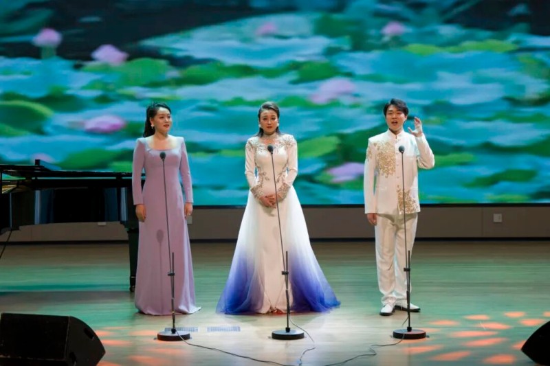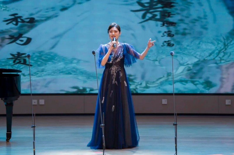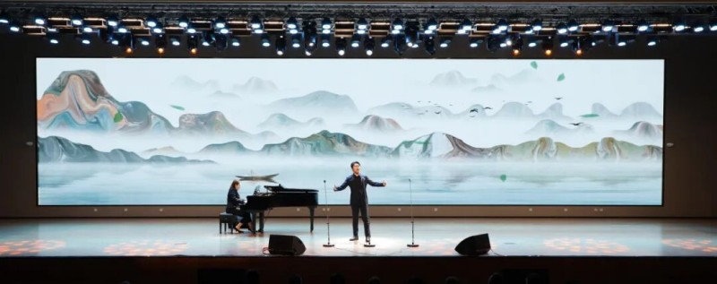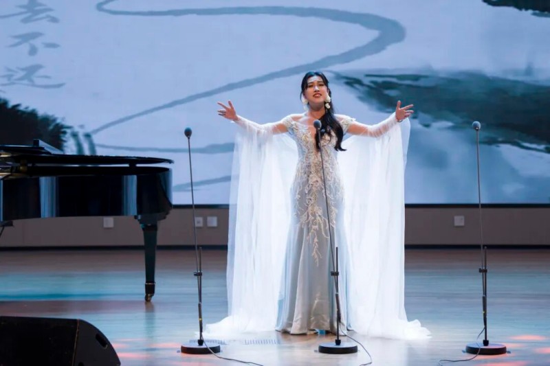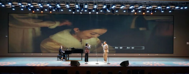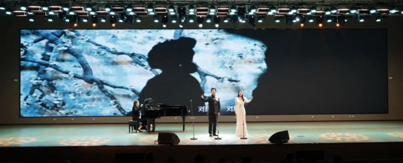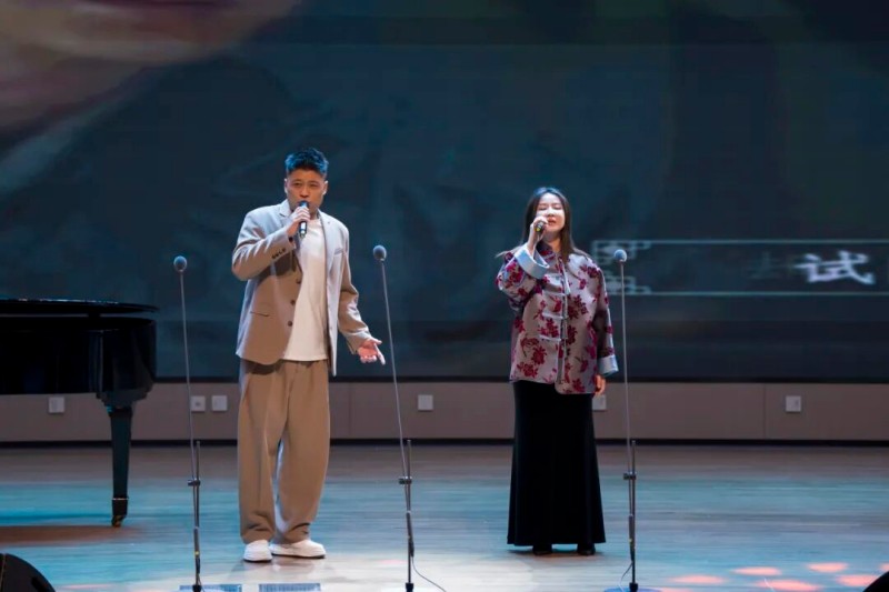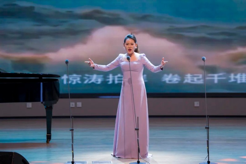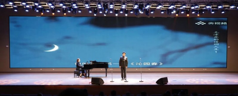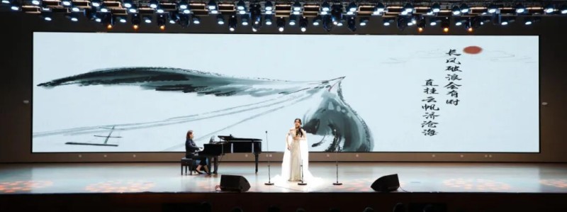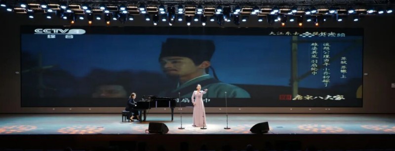 大连歌舞剧院艺术家团队采诗合乐,以时间为序串联起《幽兰操》《江南》《敕勒歌》《将进酒》《念奴娇·赤壁怀古》《知否知否》《钗头凤·红酥手》《墨梅》《枉凝眉》《沁园春·雪》等中国古典诗词作品,既有先秦古诗的质朴吟唱,又有汉乐府的婉转悠扬,既有北朝民歌的粗犷壮阔,又有唐宋诗词的豪放与婉约,既有清小说的细腻深情,又有近现代诗词的磅礴气象,还加入了《壁上观》《敬太平》《自度曲·美酒吟》《诗画中国》《龙文》等国风佳作,最后以《领航》激昂收尾,为现场师生和直播平台的数万观众献上了一场千年文辞与现代乐章的恢宏交响,引领大家切身感受了中华优秀传统文化的隽永魅力,线上线下气氛浓厚,师生反响热烈。