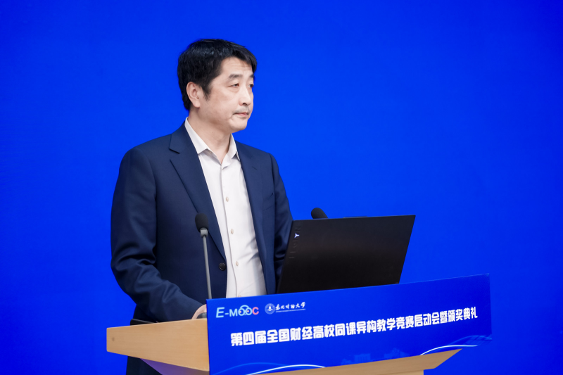 王伟同在致辞中代表学校向莅临现场的各位领导、嘉宾表示热烈欢迎。他指出,作为全国财经高校同课异构教学竞赛组委会秘书处单位,东北财经大学深度参与并见证了竞赛从第一届“课程思政”主题到第四届“智能新财经与课程思政深度融合”主题的迭代升级,其影响力与辐射力日益增强,本届竞赛将继续秉持“融合创新、共建共享”的理念,进一步优化赛制,强化“智能+财经+思政”特色,鼓励参赛教师探索AI技术赋能下的教学模式重构与课程内容创新。他强调,面对教育强国建设与数字中国战略的双重使命,财经高校肩负着为数字经济发展、金融强国建设输送高素质人才的重大责任。他希望以本次会议为契机,与联盟各成员单位深化交流合作,携手推动财经教育向数字化、智能化、融合化方向迈进,为培养适应新质生产力发展需求的卓越财经人才注入强劲动能。