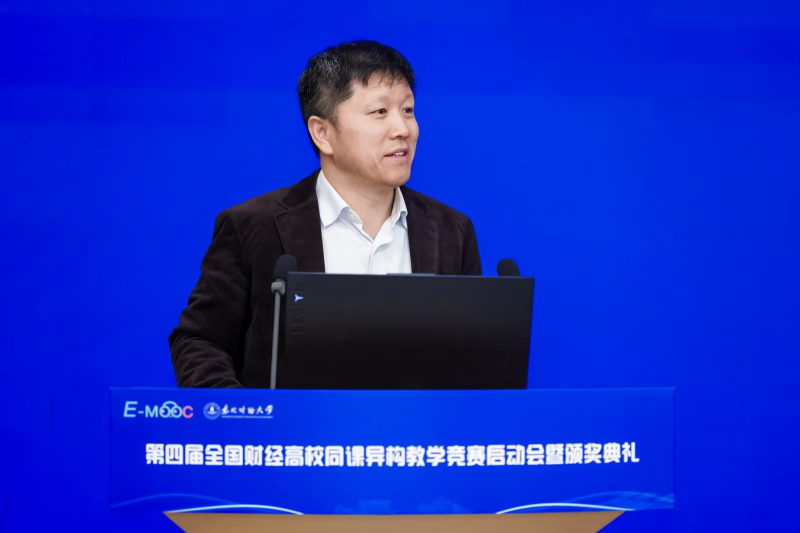 李海龙回顾了中国高校财经课程联盟在推动财经课程建设、促进校际教学交流等方面取得的成果,他指出,同课异构是指同一门课程、同一个内容由于教学对象、教学风格、教学环境等不同所导致的课程目标、教学进程、内容结构、师生活动空间、授课方式及其效果等方面存在差异的课堂模式。2023年由联盟44所财经院校联合的全国财经高校同课异构教学竞赛,集结了来自全国各大财经院校同一门课程的最强师资,先后有1500多名骨干教师直接参与比赛和评审,数万名教师观摩比赛,通过赛前培训研讨、赛中说课点评、赛后虚拟教研室交流实现教师的多模态、长期化培养。竞赛已成为全国财经高校核心课程骨干教师团队集体备课、切磋教艺的新平台,推动财经高校师资培养和课程建设从传统的“单兵作战”向“集团作战”模式转化。